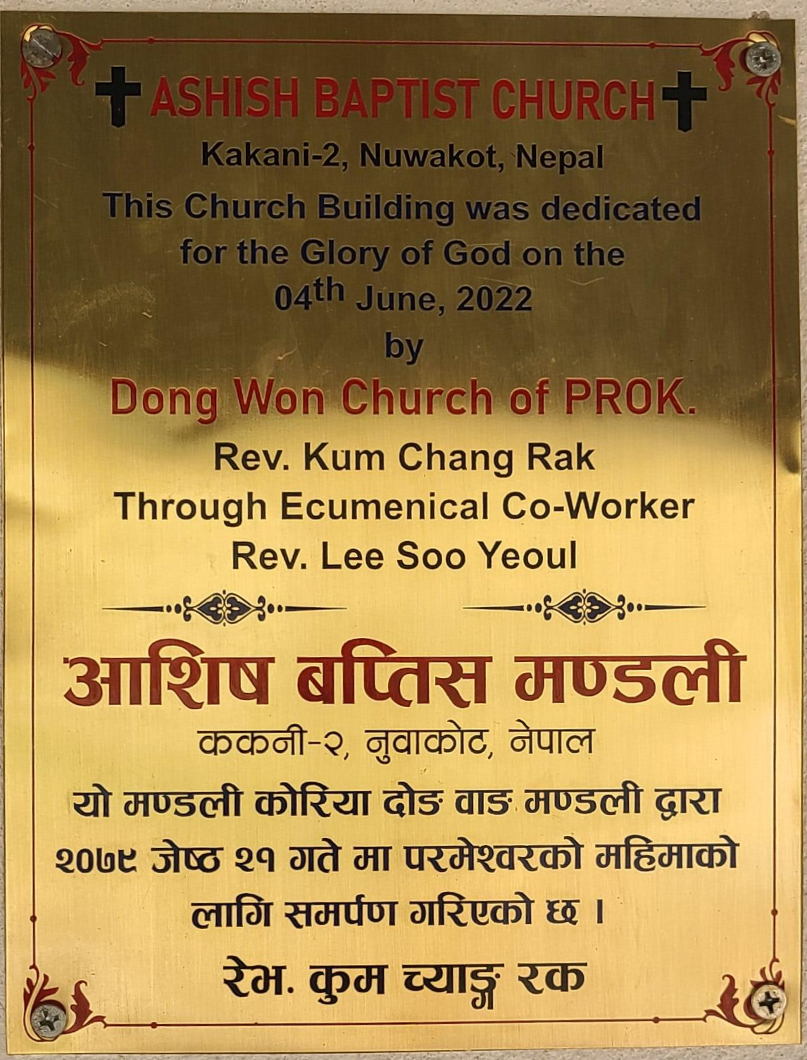 기증한 교회의 명패도 이렇게 새겨 놓았네.